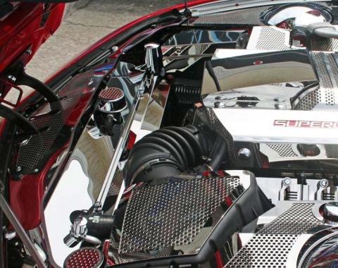 Dress up your Camaro with our polished stainless steel Perforated Inner Fender Covers. This complete kit also includes a polished stainless steel fuse box cover. These trim pieces are designed to fit over the inner fenders and…