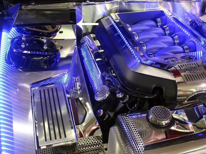 Our product line specialty extends from the interior to the exterior of your ride and into the engine bay. We also create state of the art vinyl decals and can create one of a kind custom etched windows and laser etched stainless steel products.