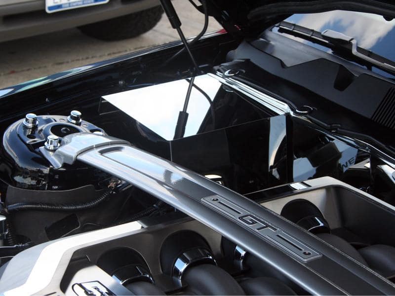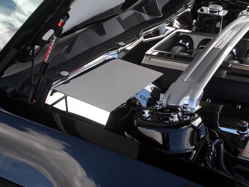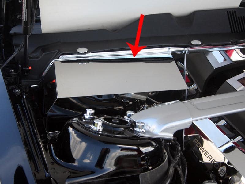 Dress up your Mustang with our Polished or Brushed stainless steel Battery Cover. These trim pieces are designed to fit over the stock battery and add a clean stylish look to your Mustang engine bay.