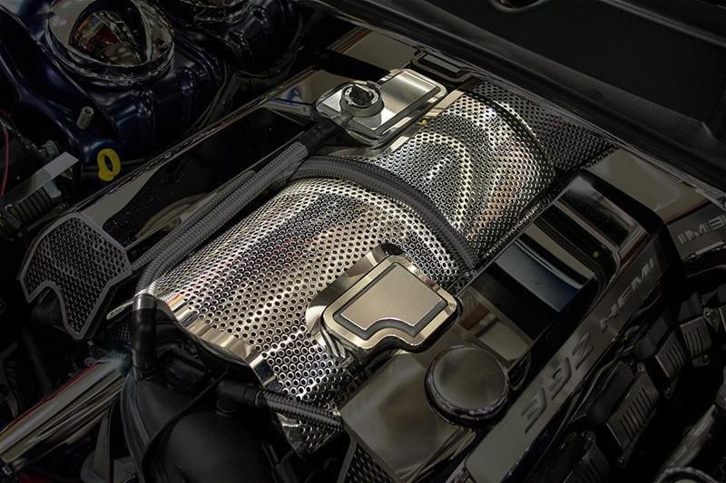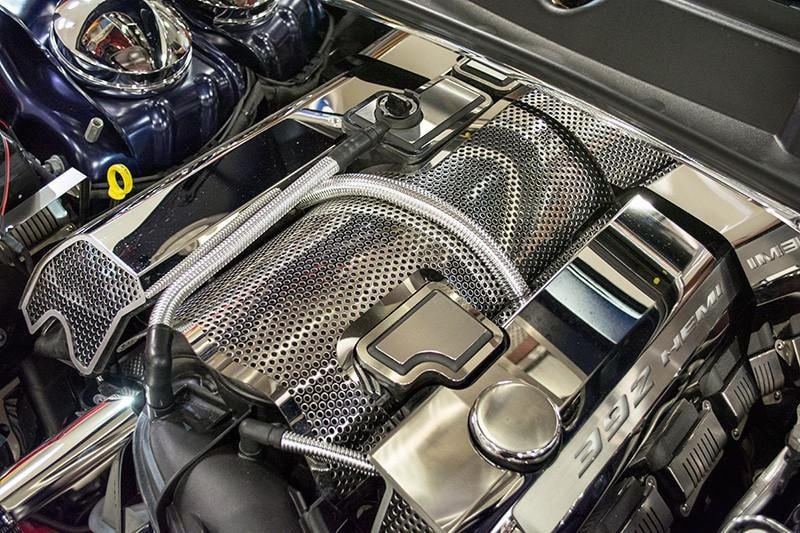 Take your 6.4 L HEMI 392 engine to the show and proudly show off your American muscle with our Perforated Plenum Cover. Whether you're driving a Challenger, Charger, a Chrysler 300, or a Jeep Grand Cherokee, if you've got a 6.4 L 392 engine under your hood this plenum is for you. Handcrafted right here in the USA, this is a very easy to install DIY engine accessory. Don't cover your engine with anything else other than American made stainless steel!