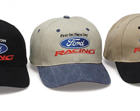 Import These new hats feature the original Ford oval and Ford racing logos embroidered on your choice of black, black and khaki combo, or blue and khaki combo on a quality low profile brushed cotton twill cap.