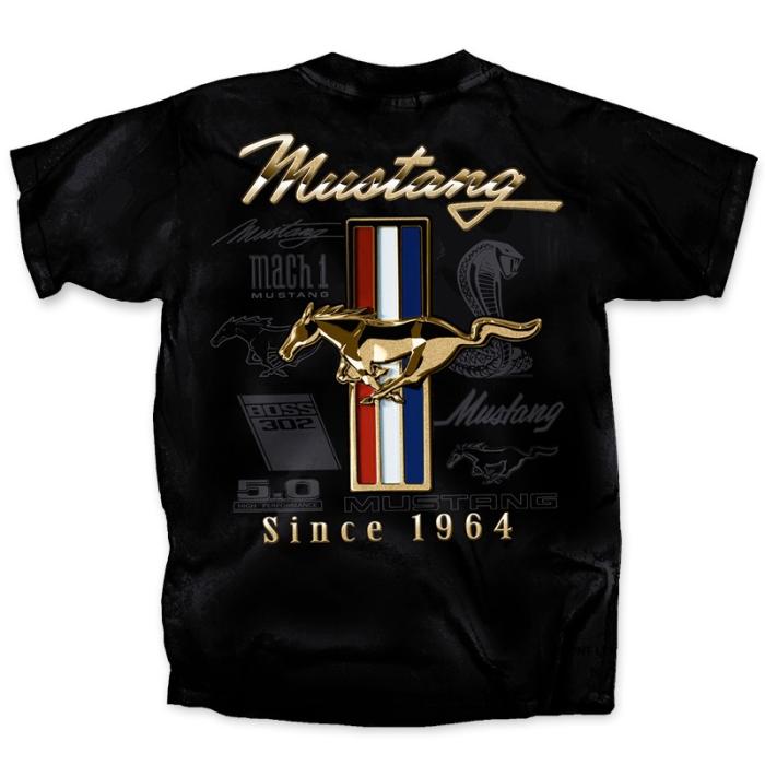 Pay homage to the original pony car with this sleek t-shirt. Featuring the iconic Mustang emblem from the legendary 1964 model, this shirt celebrates the birth of an automotive icon. 100% Heavyweight pre-shrunk cotton t-shirt