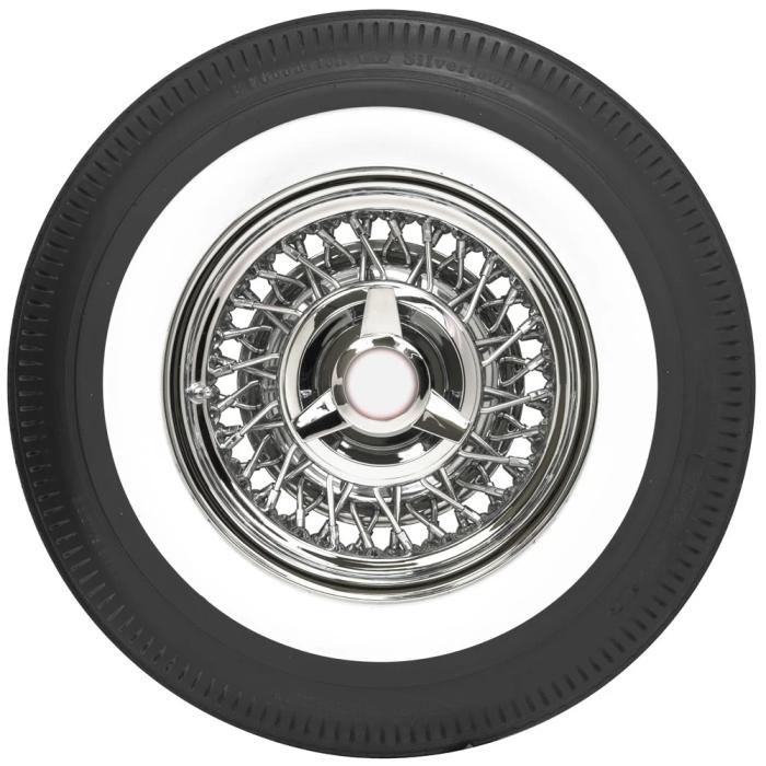 This product features a genuine wide whitewall sidewall style. This means that the bright white rubber is added directly to the tire sidewall during initial construction of the carcass, resulting in a truly integrated, high-quality product after vulcanization. Wide whitewall tires were a very popular choice from the 1930's through the end of the 1950's, and were eventually phased out of mainstream production by 1962. Originally, wide whitewall tires featured a bias ply construction, Coker Tire offers these tires in both original style bias ply and modern radial construction.