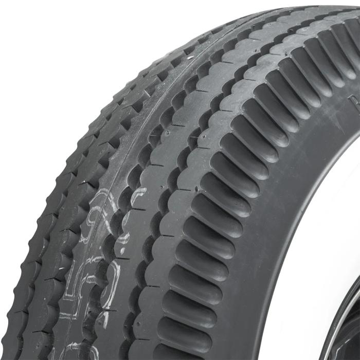 This product features a genuine wide whitewall sidewall style. This means that the bright white rubber is added directly to the tire sidewall during initial construction of the carcass, resulting in a truly integrated, high-quality product after vulcanization. Wide whitewall tires were a very popular choice from the 1930's through the end of the 1950's, and were eventually phased out of mainstream production by 1962. Originally, wide whitewall tires featured a bias ply construction, Coker Tire offers these tires in both original style bias ply and modern radial construction.