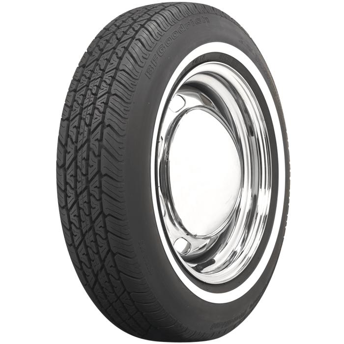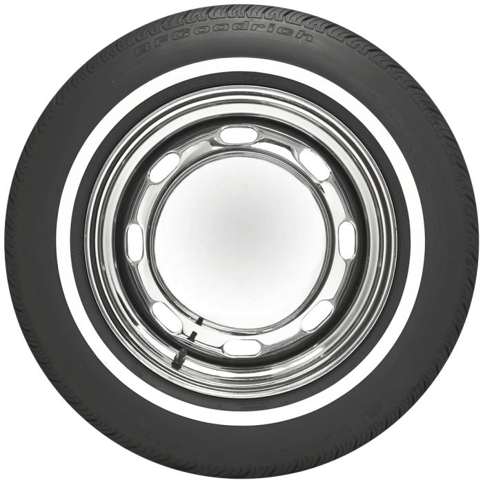 This product features a genuine narrow whitewall sidewall style. This means that the bright white rubber is added directly to the tire sidewall during initial construction of the carcass, resulting in a truly integrated, high-quality product after vulcanization. When we reference "narrow whitewall" tires, we typically mean a whitewall that measures less than two inches, but it can also mean a whitewall that does not reach all the way into the bead. Narrow whitewall tires are popular for many cars built in 1960's all the way into the 1990's.