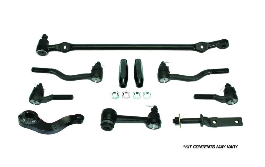 The CPP Complete Steering Linkage Kit (Part Number 6466SLK-CPGR) fits 1964-1966 Ford Mustang with Granada spindles. Designed for 400 box compatibility. Features durable black sleeves. Ensures precise steering control.