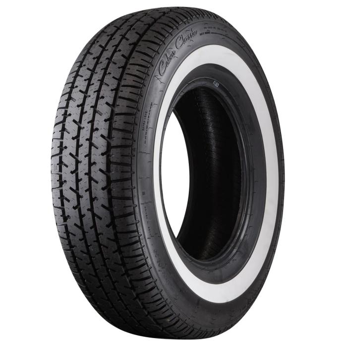 The Coker Classic Star Series 235/75R15 whitewall tire is a modern radial tire with best-in-class speed, load and traction ratings. This tire features a 1.6-inch whitewall, which is built into the tire from day one for a long-lasting tire that offers the perfect look for your classic car. The narrow whitewall fits many American classic cars from 1962 and later, and the 235/75R15 sizing is a direct replacement for 800-15, 820-15 and L78-15 bias ply tires. Coker Classic Star Series tires feature a 480AA UTQG rating, giving them excellent treadwear, traction and temperature control. Another best-in-class rating is the T speed rating (118mph), as well as XL load rating, thanks to a reinforced sidewall, which is very important on full size luxury sedans, such as Cadillac, Lincoln and other heavy hitters from the '50s and '60s. The low-noise tread looks and performs nicely, and this tire is DOT approved and E-marked for the European market. You won't find a better whitewall radial tire on the market, you have our word on it!