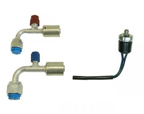 Male Trinary Switch Kit with 90 Degree Compressor Fittings - Kit Includes 11086-VUS Male Trinary Switch 35532-VUG #8 90 Degree Fitting with 134a Service Port and 35533-VUG #10 90 Degree Fitting with 134a Service Port.