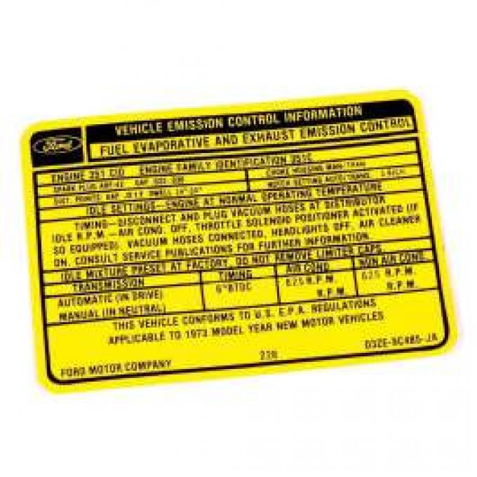 Decal - Emissions - 351C 2 Barrel V8 With Automatic Transmission