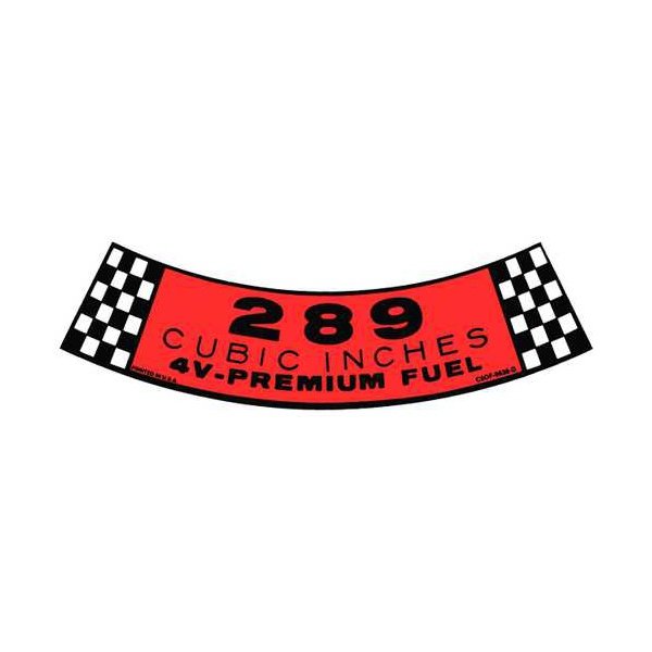 Air Cleaner Decal - 289 4V-Premium Fuel: