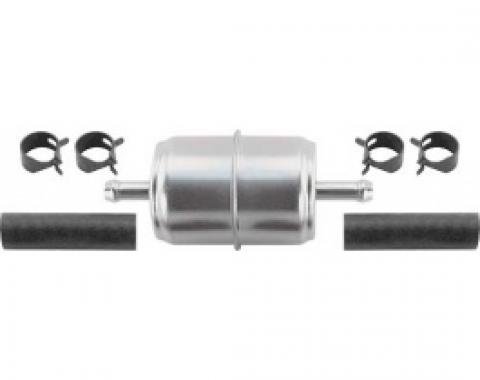The in-line Clearview fuel filter has chrome ends and a glass body for clear and quick viewing of fuel flow and debris trapped in the 100 micron white mesh replaceable filter element. Supports up to 400 horsepower, fits 5/16 inch fuel hose…