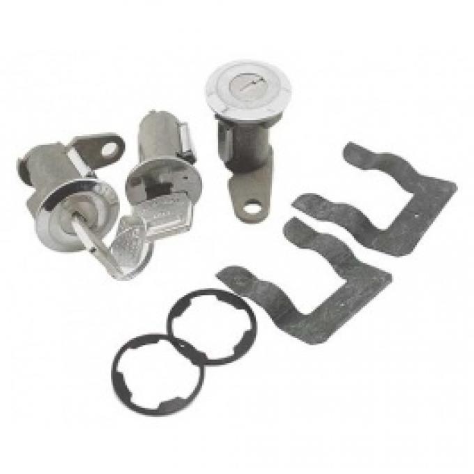 Set contains 1 ignition key cylinder and 2 door lock cylinders - all tumblers use the same key.