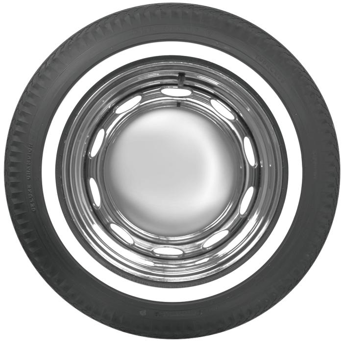 Typically wide whitewalls run all the way to the bead. Narrow whitewalls will stop somewhere before the bead, resulting in a narrower band of exposed white rubber. The bright white rubber is added directly to the tire sidewall during initial construction of the carcass, resulting in a truly integrated, high-quality product after vulcanization. This style became popular in the early sixties, eventually replacing wide whitewalls altogether.