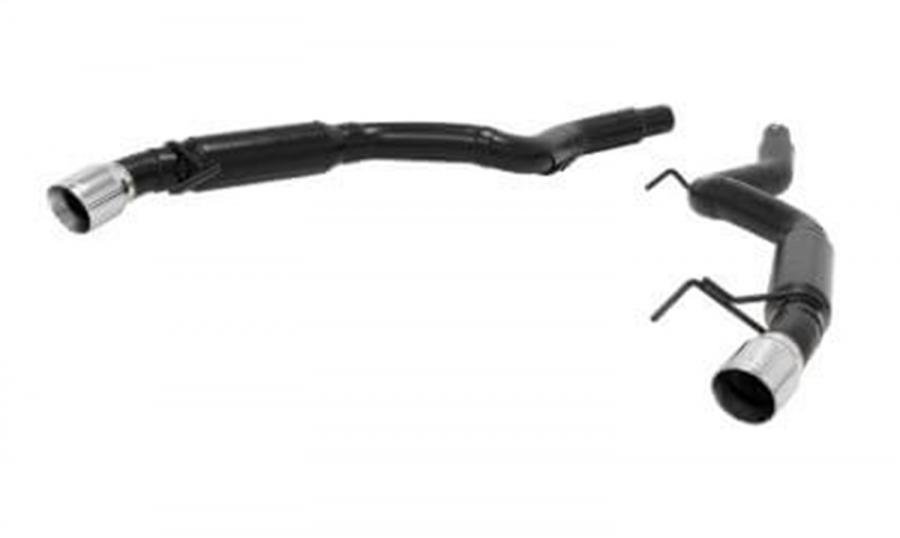This Flowmaster® Outlaw Axle-back exhaust system is specifically designed for 2015-2017 Ford Mustang GT 5.0L coupes and convertibles. The system features a pair of race proven Outlaw® mufflers for an aggressive exterior sound level with a moderate interior sound level. Features include 2.50-inch connections for an easy fit to the stock mid-pipe then the inlets quickly expand to full 3.00-inch mandrel-bent inlet tubing leading into a pair of Outlaw mufflers for maximum performance. The system is supported from the factory hanger locations for an easy and hassle free installation that can be done at home and is finished off with a pair of large 4.00-inch polished stainless steel tips for that performance look and sound that you've come to expect from Flowmaster.