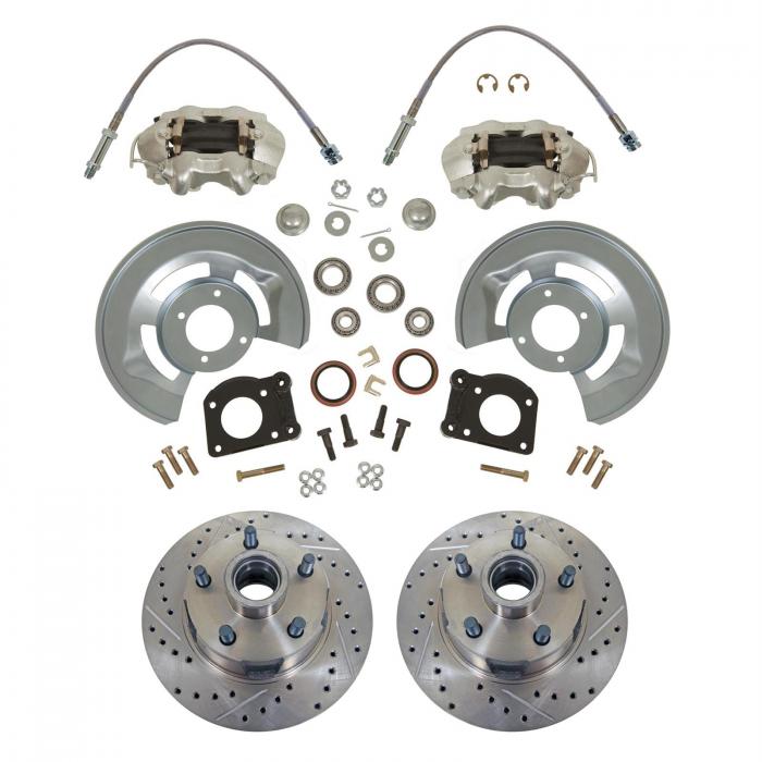 Ford Front Wheel Drum-to-Disc Brake Conversion Kit, Drilled & Slotted Rotors, 1964-1969: