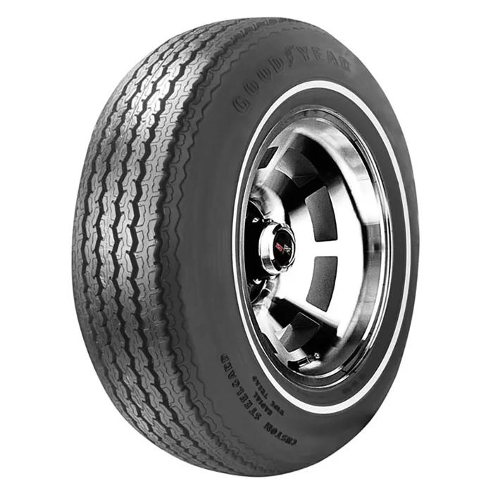 The Goodyear GM Custom Tread Raised White Letter GR70-15 is a radial tire produced specifically for General Motors vehicles from 1975 through 1977. This tire was used on Corvettes, as well as Pontiac Firebird, Formula and Trans Am. The iconic Goodyear Steel Belted Radial RWL sidewall is perfect for the mid '70s, and the radial construction offers a smooth ride.