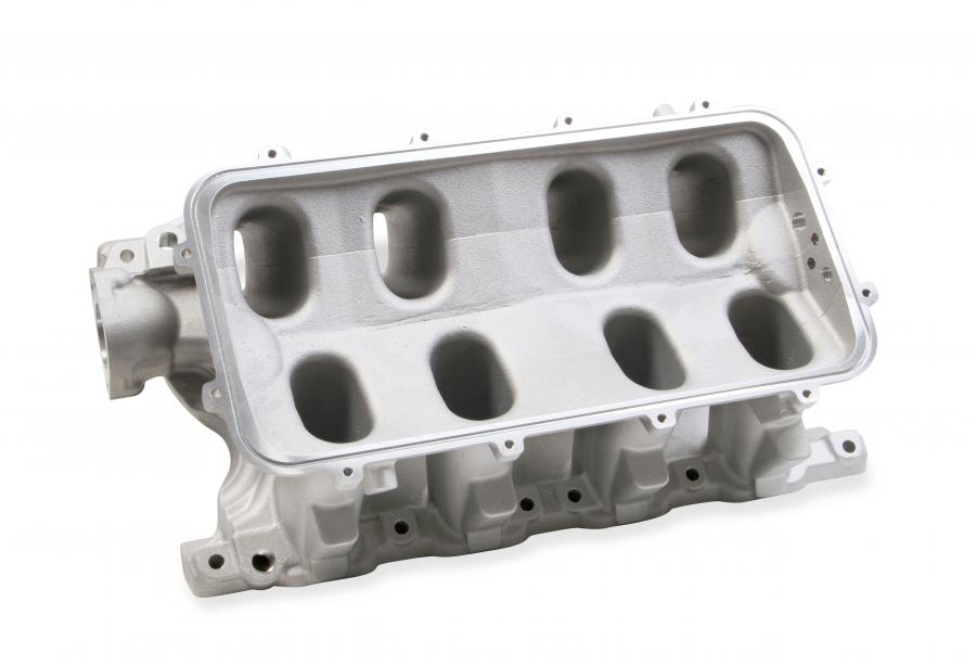 The Hi-Ram manifold line has a new addition for the 351W Ford application. The runner length and tapered cross section design will perform well for a wide range of engine combinations. The engineering team also redesigned the water crossover passage to allow room for distributor phasing. Aggressive, bold, race-bred styling will make bad intentions clear for drag race, muscle car, marine, off-road, sandrails, pulling trucks, track, street-rod applications and more!