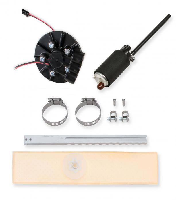 Are you interested in an EFI retrofit kit, but just can't get past the complication of the fuel system? Holley is proud to introduce their Universal In-Tank Retrofit Fuel Modules! Available in return and returnless versions, you can rest assured Holley has the solution you need for your EFI fuel pump woes. Now you can convert your factory tank or fuel cell to an in-tank EFI fuel system quickly and easily! And- add the benefits of a Holley Hydramat in the process! The conversion is easily accomplished with basic tools and requires no welding or fabrication. The aluminum module design includes a die cast pump hanger bracket to control pump vibration while also providing a low profile 5 inch diameter design to fit where space is at a premium. Holley's innovative clamping system and integrated fuel pump makes it easy. Once installed, hook up your fuel lines and your power source/ground and you're off and running! NO hassle! Supports up to 550 EFI or 700 Carb HP (@ 60 PSI at 13.5 Volts / 10.4 AMP Draw) Of course there are many variables, estimates are based on gasoline. Individual systems will vary based on fuel system design, regulator type, fuel cell location, etc...