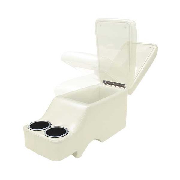 Featuring 2 cup holders (1 standard, 1 king size) with chrome accents & a storage compartment with a soft padded flip open lid, the Humphugger console is designed to fit between the bucket seats on the carpeted transmission hump.
