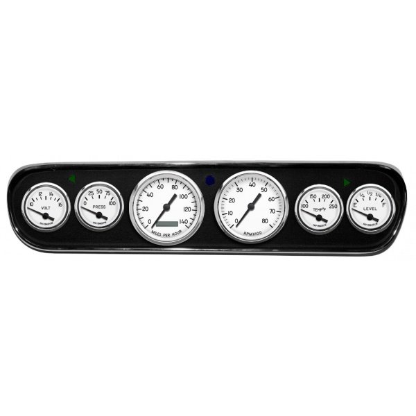 Mustang - New Vintage USA 1940 Series DIY Gauge Panel Kit - 6 Gauge Package, White Dial, 1964-1966 - Programmable Speedometer MPH: