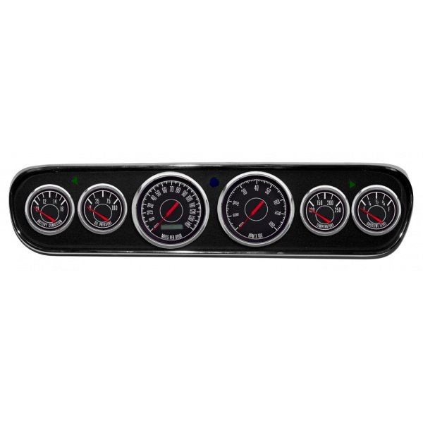 Air core instruments feature incandescent perimeter lighting and short sweep minor gauges. Tachometers operate on 4-6-8 cylinder configurations.