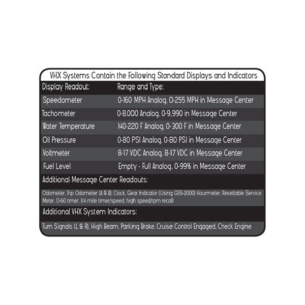 Traditional Analog style clock face, with LED backlighting and lighted needles to match a VHX Instrument System.