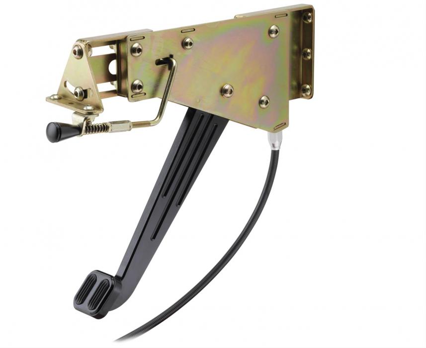 Voted best new street rod product of 1991, Lokar's under-the-dash foot operated emergency brakes provide ease of operation with a clean, out-of-the way design. Other features include a dash-to-firewall adjustable bracket, hidden gears for a clean finish, a rubber stop for quiet pedal return, and windowed arm and foot pads to coordinate them with other Lokar products.