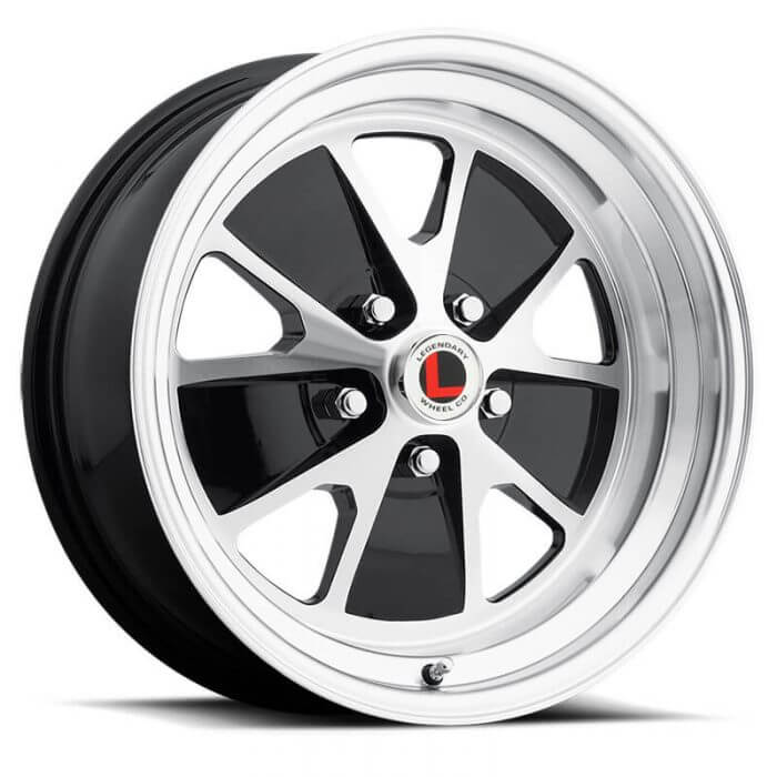 Legendary Wheels 1964-1973 Ford Mustang 17x7 Styled Alloy Wheel, 5 on 4.5 BP, 4.25 BS, Gloss Black / Machined LW20-70754A: