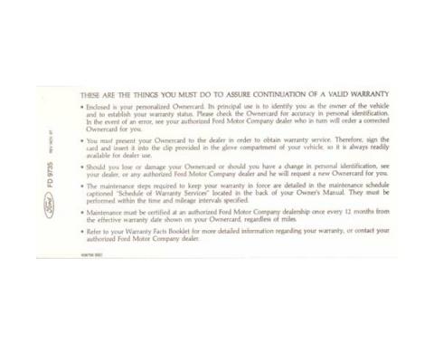 Ford Mustang Warranty Card Instruction Sheet - Personalized,- Through Early 1969 …
