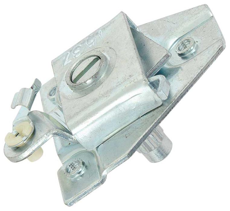 Reproduction short shaft 1964-66 Mustang remote door handle control plate. Each plate is Iridite plated for corrosion resistance. Interior door handle control assembly. This part accepts the interior door handles assist in the opening of your door. Fits the LH, driver side door. Note: For "screw-on" style door handle. Not for use with clip-on style door handles. This control is for standard interior. Will not work with pony interior.