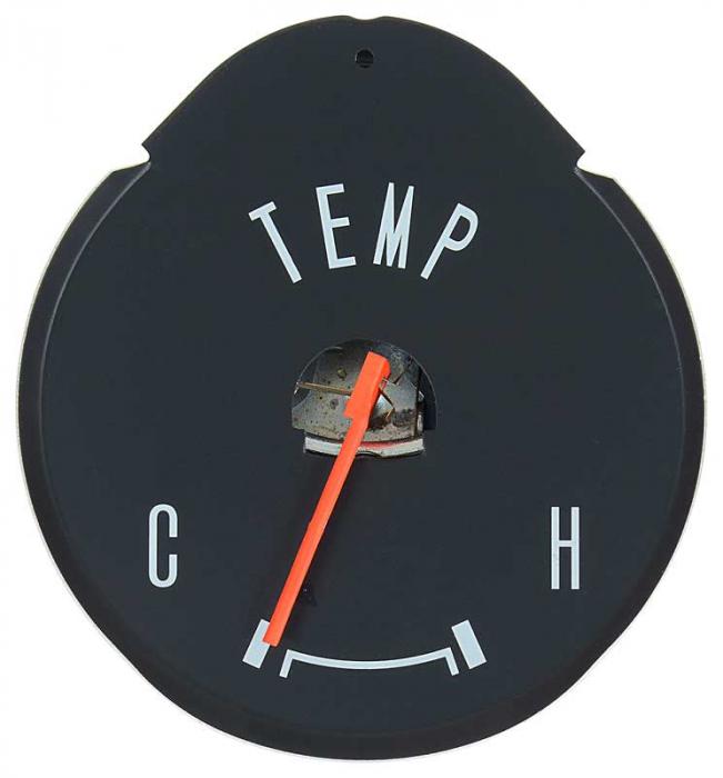 OER® Authorized reproduction of the original temperature gauge for 1964-65 Mustang. Each gauge features an authentic appearance with the word "TEMP" screen printed in the correct original font and a needle indicator finished in the correct color.