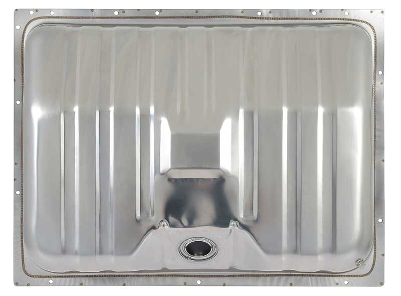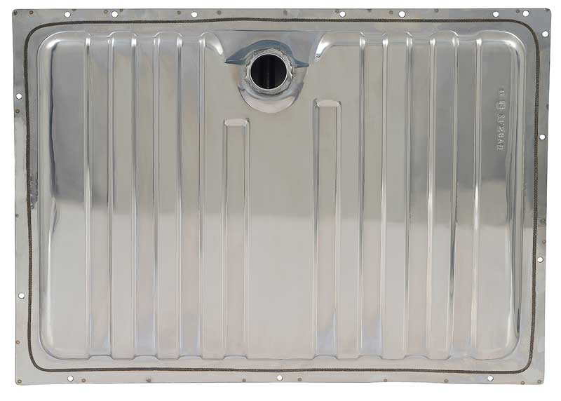 Correct reproduction of the original fuel tank designed for with 1964-1968 Ford Mustang, and 1967-1968 Cougar models. This reproduction fuel tank is manufactured in stainless steel replicating the original GM tank offering originality with an upgraded and customized stainless steel appearance. Measures: 32-5/8" x 24 1/2" x 7". This is a 16-gallon fuel tank that replaces the old tank perfectly. Note: Fuel tank sending unit available separately. Note: Fuel tank to filler neck grommet sold separately.