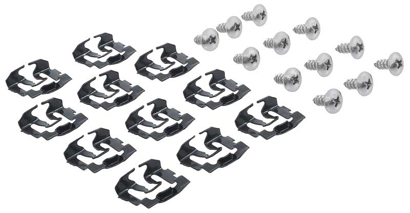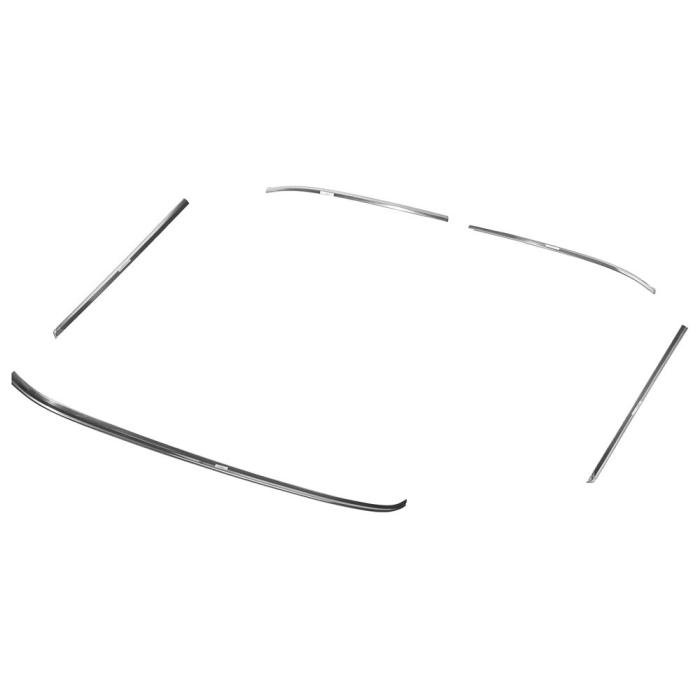 Reproduction of the original windshield molding set designed for 1964-68 Mustang coupe and Fastback models, and 1967-68 Cougar coupe models. This reproduction is manufactured in stainless steel as original. This 5-piece reproduction will fit both coupe and fastback models. Installation clips included with each set (22 clips and 22 screws).