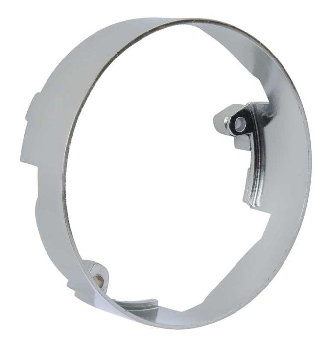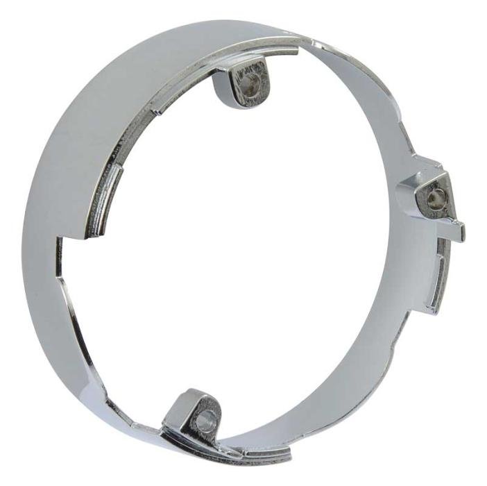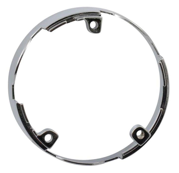 Reproduction 1964-66 Mustang deluxe steering wheel bottom collar. Each collar is manufactured in zinc die-cast material and plated as original. Mounts to the bottom of the OEM deluxe steering wheel.