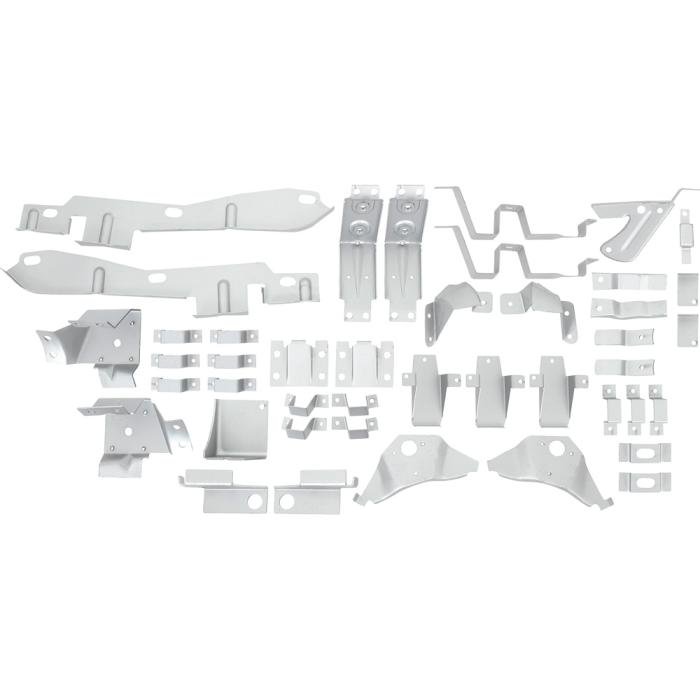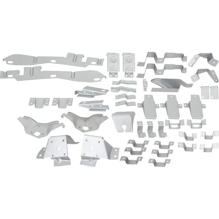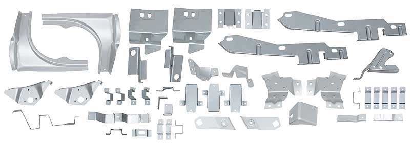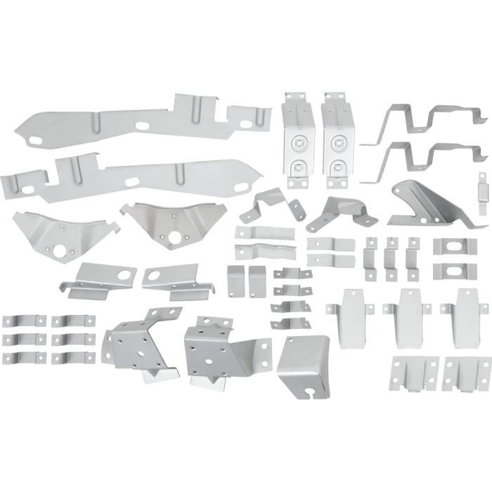 These are the hidden brackets behind the body that act as bracing for the cars structure. A great way to ensure that your Mustang's inner structure will last years after the restoration! The brackets in this 43-piece kit are made of high quality stamped metal, using the up-to-date technology in order to achieve the most accurate fit. Rest assured this bracket kit will fit just like the original inner bracing.