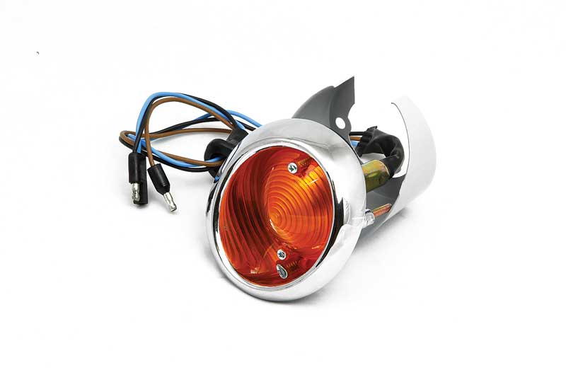 Reproduction of the original 1964-66 Mustang park lamp assembly designed for a complete replacement of the original lamp assembly. This beautiful triple chrome plated parking light housings will add new life to the front end of your Mustang. This pre-assembled park lamp assembly includes the lamp socket, lens, lens gasket, plug, bezel, bulb and retainer. For use on the RH passenger side.