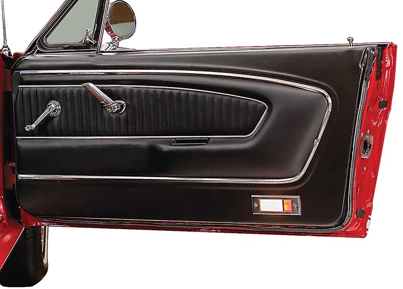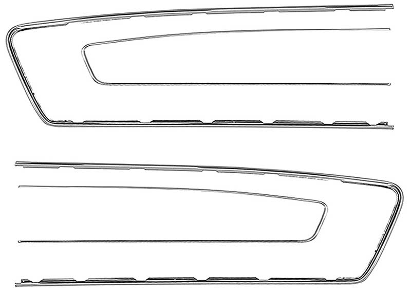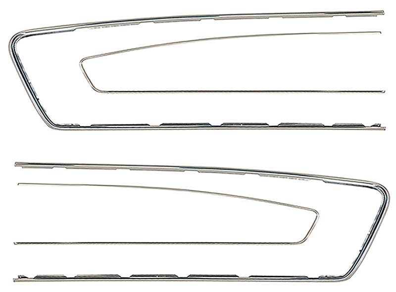 Reproduction of the original door panel moldings designed for use with 1965-66 Mustang Pony models. These bright stainless steel reproduction mouldings will replace worn or damaged originals. Mouldings are precision formed with the correct contours. Inner moulding has mounting pins, outer piece has panel clip cut outs, as original. Available in a set (2 inners, 2 outers) for both doors.
