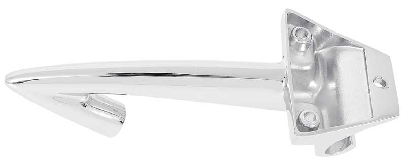 Reproduction of the original inner mirror bracket designed for use on 1964-66 Mustangs. Each bracket is manufactured in zinc die cast material and polished to a glissening finish. Will fit and install as original.