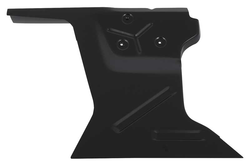 Reproduction of the original front fender rear apron designed for use with 1964-66 Mustangs. Each rear apron is manufactured from heavy gauge stamped steel replicating the original configuration for an authentic appearance and fit. Attaches the rear of the shock tower to the firewall. The hood hinge bolts to the fender apron. Comes with a black EDP coating for rust and corrosion prevention.
