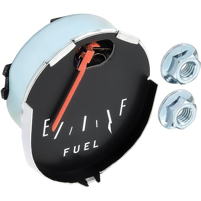 Factory style fuel gauge for use on 1964-66 Mustang models equipped with the round style speedometer. Each gauge features original style "E" and "F" fonts screen printed in white on a black faceplate for an authentic original appearance. Needle is finished in the correct shade.