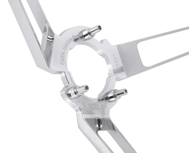Reproduction of the original Horn Ring designed for use with 1964-67 ord Mustang models with deluxe woodgrain steering wheel, for models equipped with Deluxe Woodgrain Wheel. Each horn ring is manufactured in quality die-cast zinc and chrome plated replicaing the original ring in design, appearance, and fitment.