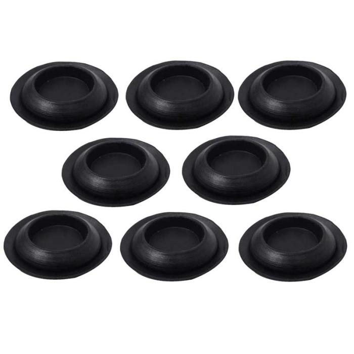 Reproduction seat access hole plugs for various Ford models including 1965-73 Mustang. The rubber plugs cover up the access holes to get to the seats in the floor pan. Each plug measures 1-1/2" in diameter. Manufactured in quality black rubber. 8 required per vehicle, Sold in 8 piece sets.