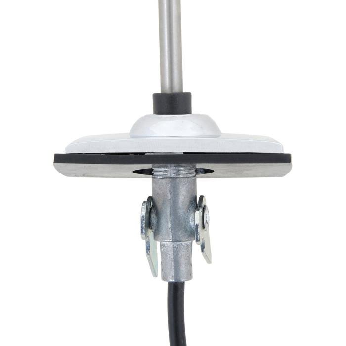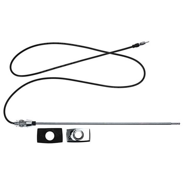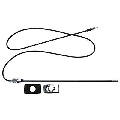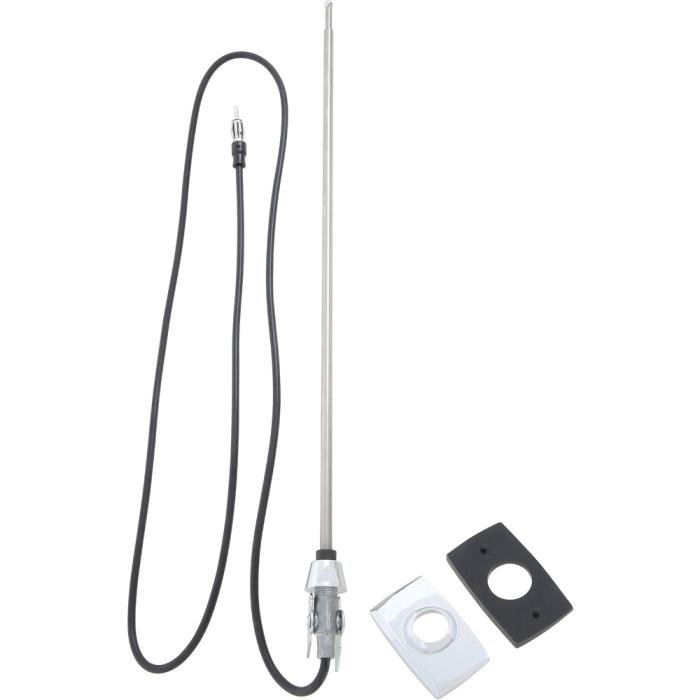 The rectangular base was original on 1968 models but this antenna can be used with all Mustangs. Includes the mast, cable and mounting hardware. Will cover a larger antenna hole.