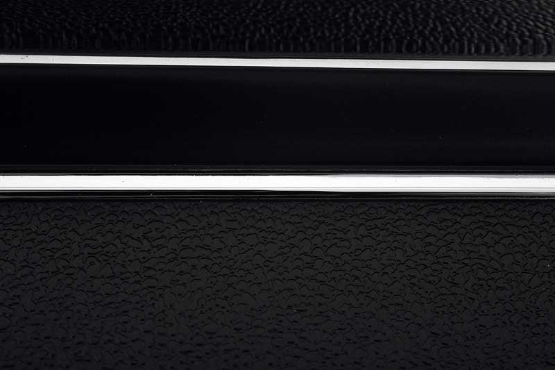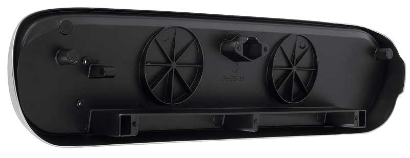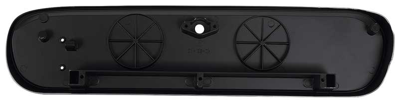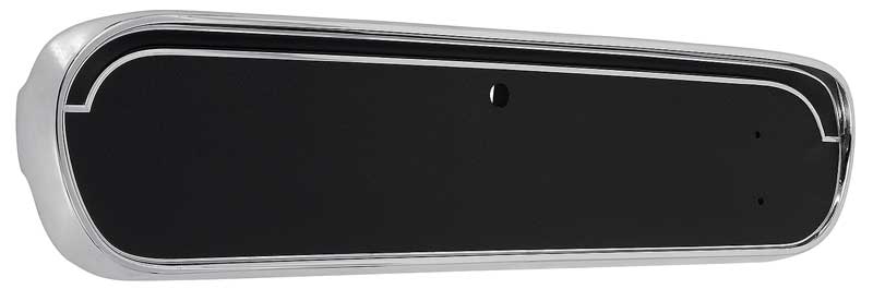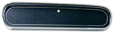 Factory GT style reproduction die-cast zinc door features a camera-case black finish with show quality chrome. For 1965 GT models with standard interior. Manufactured to OEM specifications to ensure an exact fit. This glove box door has the same design as the pony glove box except for the finish. Running pony tri-bar emblem available separately.
