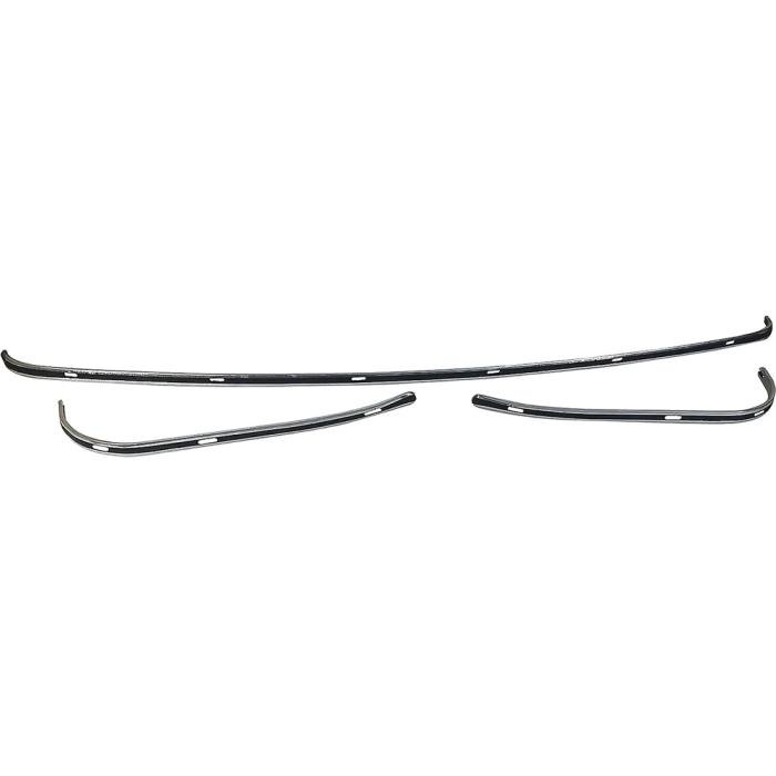 Reproduction convertible rear tack strip that mounts under the rear panel behind the window. This strip holds the convertible top, rear window and well liner to the body. Manufactured from factory grade metal, each strip includes a cardboard insert for proper staple fastening. Each set comes in sets of three to hold the convertible top, rear window and well liner to the body in the rear well area. Will mount into place behind your rear window.