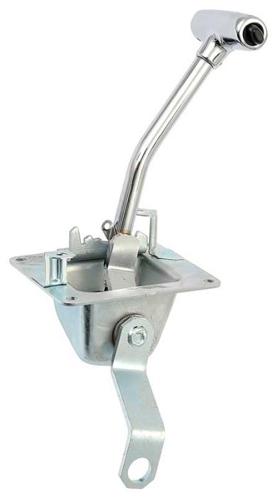 Reproduction of the original Shifter Assembly for use with 1967-68 Mustang and Cougar models equipped with and automatic transmission and factory floor console. Each Shifter Assembly is constructed in stamped steel with quality chrome plating on the lever and handle just like the factory original. Made to OE specifications, this shifter assembly is a direct-fit for bolt-on installation.