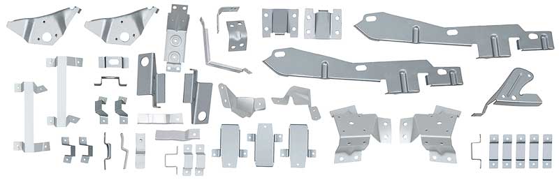 These are the hidden brackets behind the body that act as bracing for the cars structure. A great way to ensure that your Mustang's inner structure will last years after the restoration! The brackets in this 42-piece kit are made of high quality stamped metal, using the up-to-date technology in order to achieve the most accurate fit. Rest assured this bracket kit will fit just like the original inner bracing.