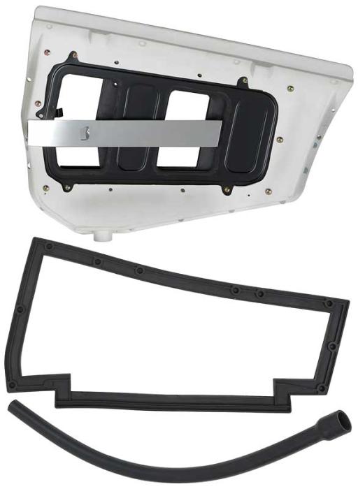 Reproduction of the original exterior quarter panel vent door assembly designed for use with 1967-68 Mustang Fastback models. Each assembly includes a reinforced ABS housing, slider rails, slider door and seal, chrome handle, drain hose, and door-to-body gasket.