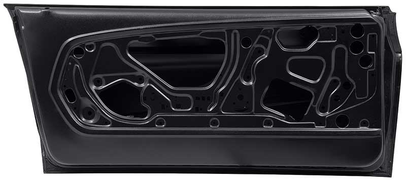 Reproduction of the original style complete door shell for use with 1967-68 Ford Mustang models. Each outer door shell is manufactured in stamped steel to original factory specifications featuring correct contours for an authentic appearance and fit. Features correct location of all mounting holes for window and door latch mechanisms, door hinges and inside door panels. Authentic stamped grain on interior door surfaces. Reproduction door shells are sold as a replacement for the sheet metal portion only, without any internal components, hardware or glass.