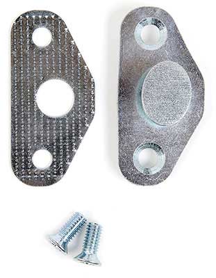 Reproduction of the original latch assembly designed for use with 1967-70 Mustang, Cougar, 1968-77 Bronco, 1965-70 Country Squire, Country Sedan, Galaxie, LTD, Ranch Wagon, Thunderbird, and Torino models. Each plate is constructed of high-quality steel that matches the original design and durability. Door lock striker plates will attach to the door and grab the door latch striker to hold the driver side door closed. This assembly is an OEM-style replacement part used in all Ford models listed. Sold individually. 2 Required per vehicle. Includes striker plate, shim, and two Phillips head zinc screws.